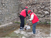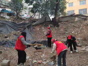 1、在东店子社区同社区党员同志打扫区域卫生;