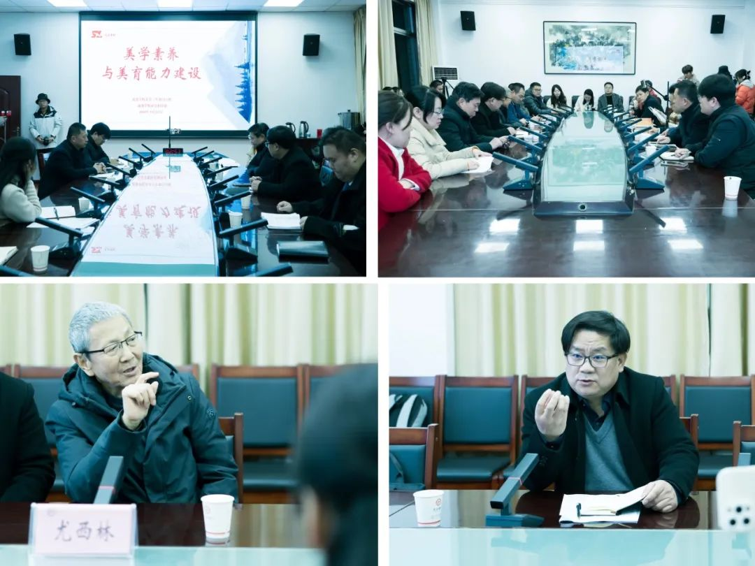 当尤教授向在场教师询问当前最新的艺术载体是什么,大家踊跃发言。接着他与大家探讨“人工智能”时代,艺术是否会走向终结?最后他坚定的指出:即便是人工智能的高阶时代,艺术走向终结的最大障碍仍然是“美”和“美育”,并强调“美”是“真”和“善”之间的自由中介,“美”必须走在“真”和“善”的前面。美学,作为一门研究美的内涵、美的规律以及美的产生和表现方式等方面的学科,不仅关乎个人的审美修养,更与社会的文化建设和精神文明息息相关。在高校教育领域,艺术和人文公司的教师,更要不断涵养和提升美学素养,不仅体现在个人的言行举止、审美趣味上,更体现在对公司文化建设、教育环境营造以及师生精神风貌的引领上。