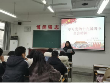 为学习贯彻党的十九届四中全会精神与习近平总书记关于统战工作的论述,2019年11月27日下午5:00,员工第二党支部全体党员在1-605教室共同学习领会会议精神,支部书记刘露老师主持会议。