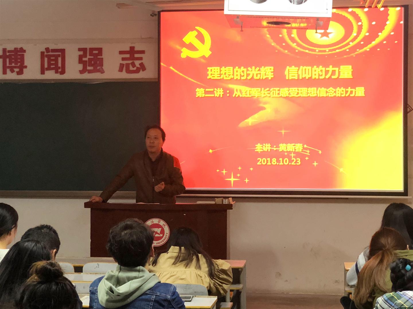 随后,黄书记通过重温历史,带领同学们学习长征过程中涌现出的一个个感人事迹,让同学们深切感受红军长征精神中所蕴含的理想信念的力量,这力量不仅克服了恶劣的自然条件、战胜了敌人的围追堵截,也凝聚了互助团结的精神、获得了群众拥护与支持,更赢得了国内外的广泛同情。