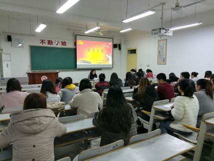会上,刘露老师介绍了党支部“三会一课”制度和本学期学习计划,刘老师指出,要坚持党员教育重要制度,加强党性修养,在工作和生活的各个方面都要体现党员同志先锋模范带头作用。另外,刘老师要求大家认真学习习近平新时代中国特色社会主义思想和十九届二中全会精神,学习党章党规,争做合格党员。