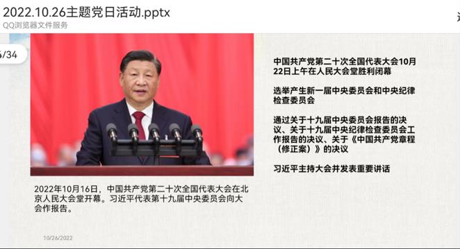 党的二十大擘画了以中国式现代化全面推进中华民族伟大复兴的宏伟蓝图,描绘了全面建成社会主义现代化强国的光辉前景。2022年10月26日bevictor伟德员工第二党支部在钉钉上通过网络直播开展“学习党的二十大精神”主题党日活动,bevictor伟德员工第二党支部全体党员、预备党员参加。