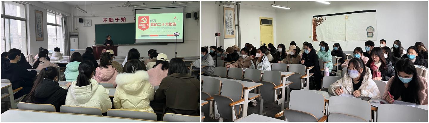 学习现场同学们认真听、仔细读、频频勾画、深入思考、静静做笔记,不知不觉间已学习近2个小时,但仍觉学了个皮毛而已。最后李老师对参会同学提出要求:一分部署九分落实,同学们要进一步深入学习党的二十大报告内容,将党的二十大精神落实到个人的行动中,真正做到把自己的发展和国家的事业结合起来,做好人生规划,勇担使命,成长为一个对党、对人民、对社会发展有贡献的人!