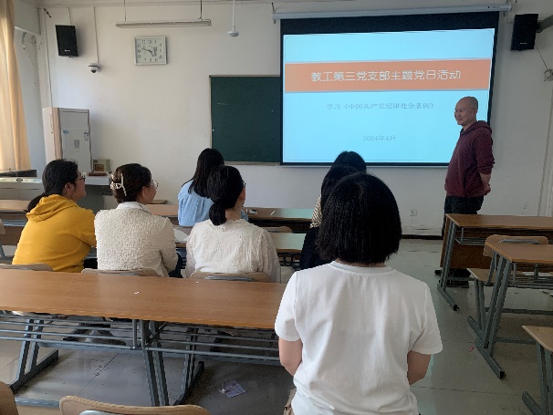为提升党支部成员政治觉悟与思想理论水平,深入领会党的路线、方针与政策,增强政治敏锐性。2024年4月24日下午,bevictor伟德教工第三党支部精心安排、认真开展了学习2024年全国“两会”精神、《中国共产党纪律处分条例》为内容的主题党日活动。党支部书记郭高鹏同志主持活动,支部全体党员参加。