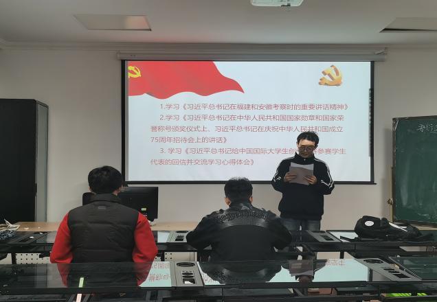 会上,李沛桐首先带领支部成员学习了十月份习近平总书记在福建和安徽考察时的重要讲话精神,提出要深入贯彻好、领会好、实践好习近平总书记考察中提出的一系列要求,全方位推动高质量发展;接着由李芃辛同学带领大家学习习近平总书记《在中华人民共和国国家勋章和国家荣誉称号颁奖仪式上》和《在庆祝中华人民共和国成立75周年招待会上的讲话》,文中提到:当前我国正处于中国式现代化全面推进强国建设、民族复兴伟业的关键时期,全党全国各族人民要以英雄模范为榜样,团结奋进、砥砺前行;崔雪丽、蒋小康分别带领支部党员学习《习近平总书记给中国国际老员工创新大赛参赛员工代表的回信》和《中国共产党支部工作条例(试行)》等相关内容。