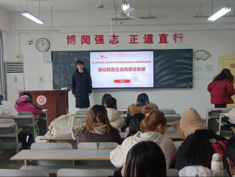 对于企业家精神的内涵,党员们进行了重点学习。新时代企业家精神包含厚植爱国情怀、弘扬创新精神、坚持诚信守法、积极承担社会责任、不断拓展国际视野等内容。在学习过程中,同学们分享了对近代企业家的了解,如张謇等,他们的爱国事迹贯穿其一生,彰显了深厚的爱国情怀,成为社会主义核心价值观的生动历史教材,让大家对企业家精神中的爱国情怀有了更直观的感受。