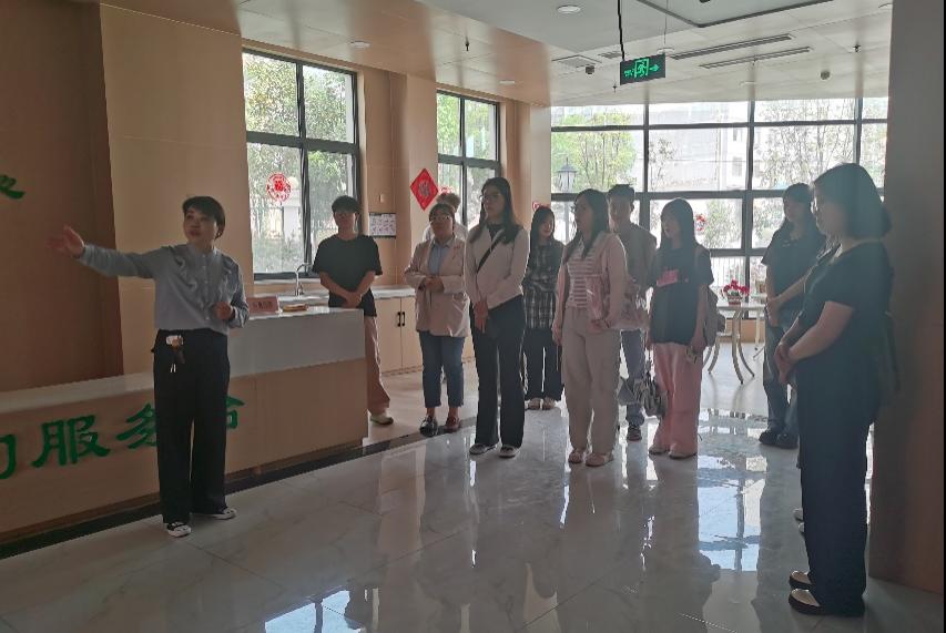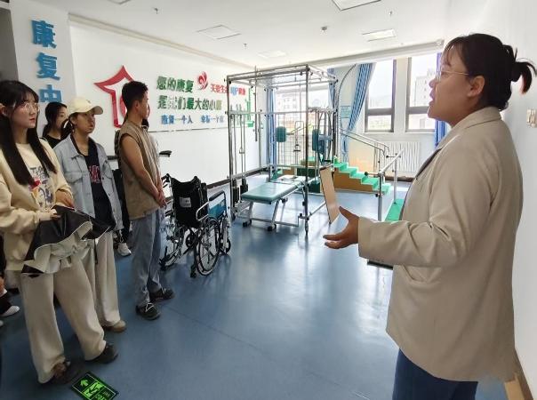 通过参观和工作人员介绍,同学们了解到院内各楼层设有不同功能的医疗服务室。其中,不仅设有失能半失能护理区、康复及中医药理疗区以及认知症专区等多个医疗区域,还设置康复训练室、阅览室、乐聊室、报告厅等康体娱乐场地。通过观看视频同学们进一步了解医护工作者照顾老人日常起居的流程,每一处细节都体现着对老人的关怀。