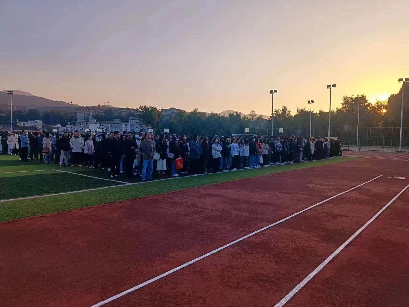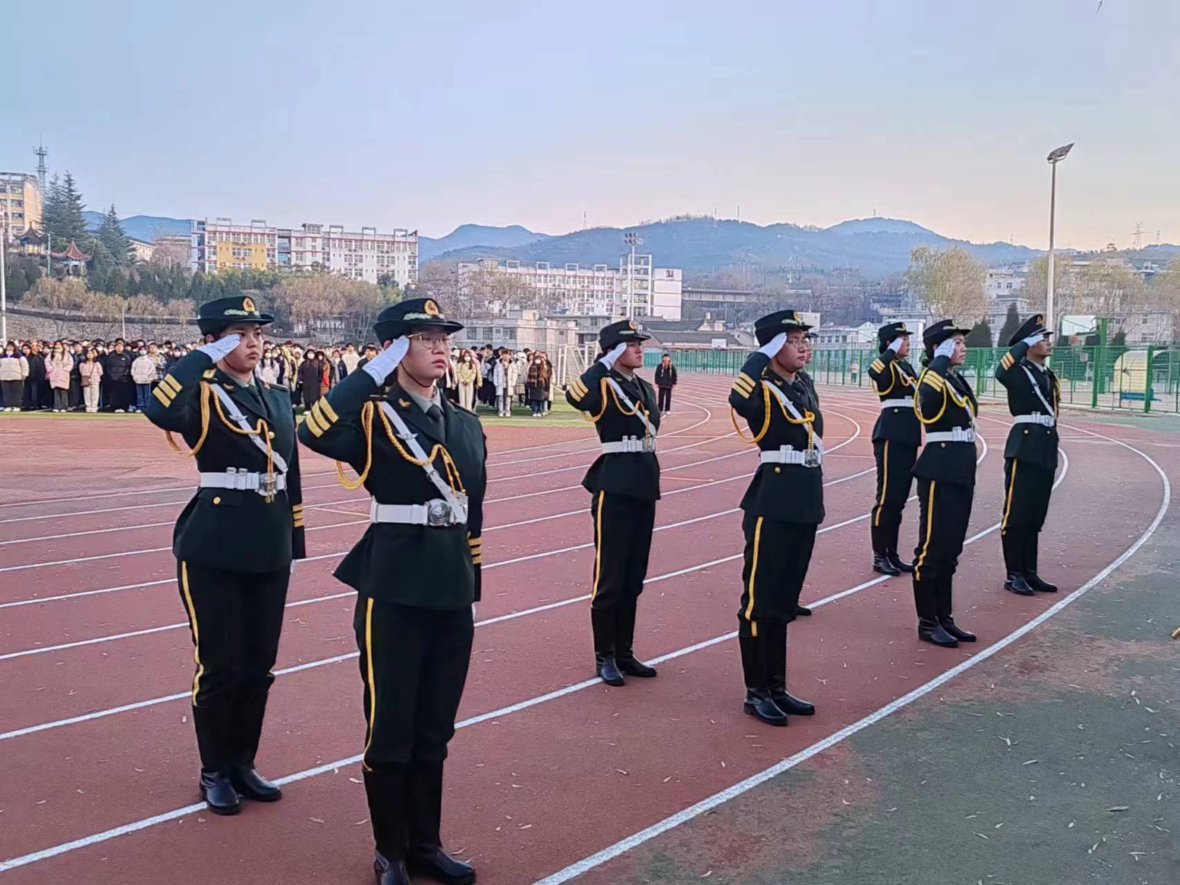 上午7:10在雄壮的国歌声中,五星红旗冉冉升起。在场师生目光坚定,神情庄重,向国旗行注目礼。