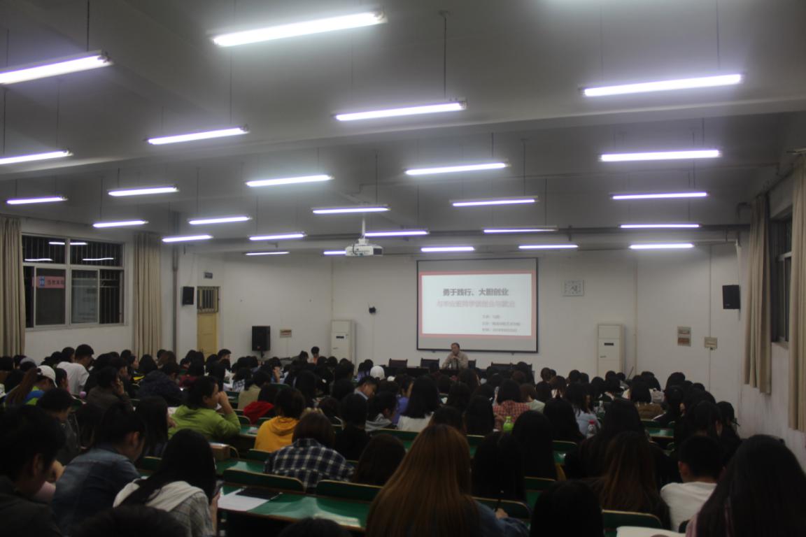 报告会开始,马莉学长首先联系个人实际和经历,剖析了目前老员工的就业的总体现状与严峻形势,指出不少毕业生在毕业之际,没有冷静客观对待就业,没有认真检视自己,存在盲目考研和考公务员的现象;存在观望、等待或一筹莫展的现实;存在视野短浅、墨守成规、观念落后、路径狭隘偏颇等问题。对于自主创业这天宽广深远的就业之路,没有勇敢尝试、大胆践行。大家没有对市场进行深度了解调研,没有对行情做最基本的研判分析,尤其是没有对自己进行客观准确的自我考量。因为无知,往往被一些必要的创业要素所困惑,如,一说创业,大家普遍被缺少创业资金的想法所打败,谈虎色变,望而生畏。但马莉学长告诉大家,这不是老员工创业的最大的拦路虎,结合专业、联系自身实际,可以先做小,后做大,循序渐进,实现创业更高目标。老员工创业之路,可以量力而行、见机而为,大三大四是开启创业的黄金时期,缺少创业资金并不是回避创业的简单理由。不经一番彻骨寒,怎得梅花扑鼻香。她说:“我们一无所有,所以我们没有理由害怕。无论人在哪个高度,都需要积极进取的信念和不断奋斗力量”,世上无难事,只要坑登攀!希望学弟学妹们在毕业之际、在就业之时,更新就业观念,广开择业思路,勇于践行,大胆创业,开辟一片属于自己的美好天地!