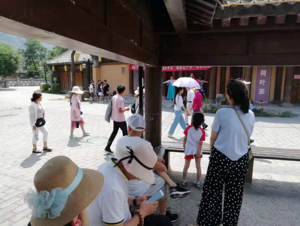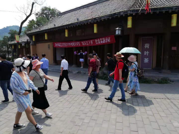 在棣古镇的演出,同学们克服高温酷暑,在炎炎烈日下挥汗向游客们展示商院学子的青春风采。一曲《敢问路在何方》将现场观众带回了八十年代西游记的主旋律中,重温经典,赢得了现场观众的阵阵掌声,唤起了人们对美好未来的无限憧憬,有的观众跟着我们的员工现场歌唱,还有观众时而做出齐天大圣的样子,真是童心未泯啊!