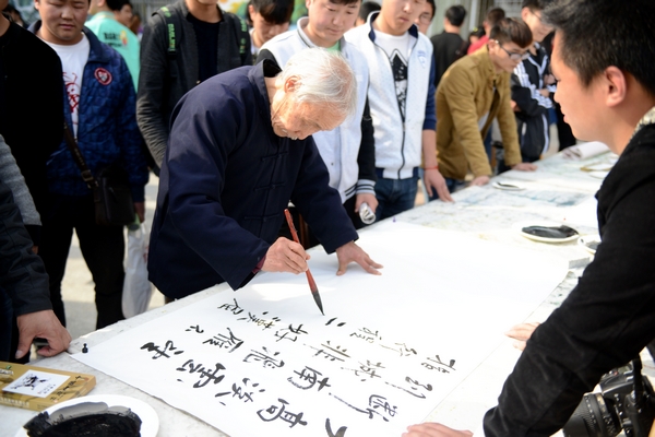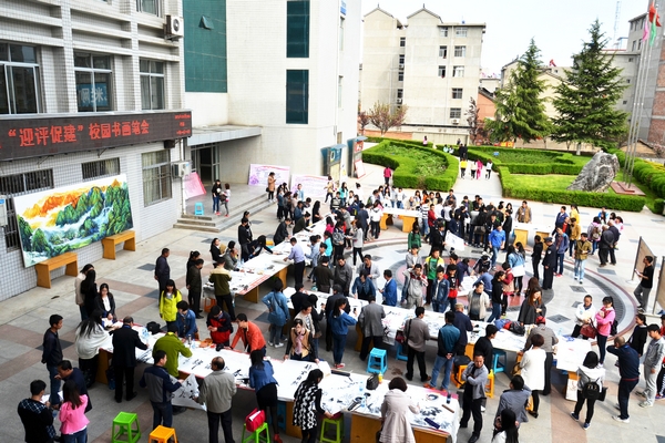 笔会上,伟德国际1946书法家协会主席李尚民,陕西毛体书法艺术研究院副经理刘全民,商山书画院经理张东海,商洛市老年大学董事长崔学民,陕西书画院商洛分院副经理殷宝喜,商洛市文艺评论家协会主席李中合等老中青艺术家挥毫泼墨、题字作画,成为校园里一道靓丽的风景线。