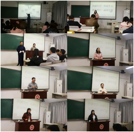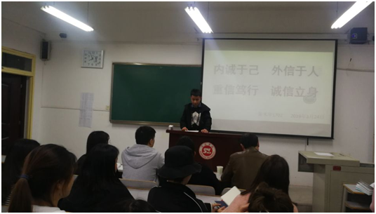 举办本次主题班会,围绕学风建设和诚信教育,以上学期班级考试中个别员工违反考试纪律、诚信缺失案例为引子,精心安排和组织这次专题教育活动。一段诚信宣传短片点名班会主题,在主持人介绍活动背景、内容和怒地后拉开了序幕:王玉叶同学的“诚信”演讲,生动列举了两个诚信有关的故事,引出孔子的格言“言必行,行必果”,强调了诚信可贵,信用无价!刘振宽同学表演的相声“日遭三坑”,形象生动的诠释了“诚则成,诚则用”真谛,既活跃了班会气氛,又带给了同学们对诚信的深思。班主任张梅、辅导员刘露两位老师的现场点评既行了总结,也提出了要求,强调“诚信不是一句口号,贵在日常生活中自觉践行”。互动环节,奇谈同学何老师积极发言,参与讨论,从不同的视角提出了他们对于诚信的见解,凝聚了共识,活跃了气氛。