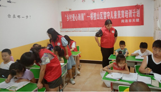 2021年7月20日下午,“乡村爱心画圃”杨杨、徐肖、李瀛等团队成员在公司李斌、教务处苏铁柱两位老师的带领下,来到贤知书院开展老员工暑期“三下乡”社会实践活动。团队成员用他们所学的书法知识技能,给学习书法的小朋友逐一进行指导,让他们充分了解和认识中国传统书法独特的魅力。