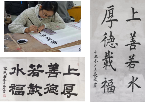 粉笔字现场满是“哒哒哒”的声音,一笔一划,伴随着轻轻飘落的粉笔灰,横竖撇捺在笔尖稳稳落下。比赛现场,黄书记在点评之余即兴书写了粉笔字,引发了师生对教师职业的板书能力水平及中国书法艺术表现的深入思考与探讨。
