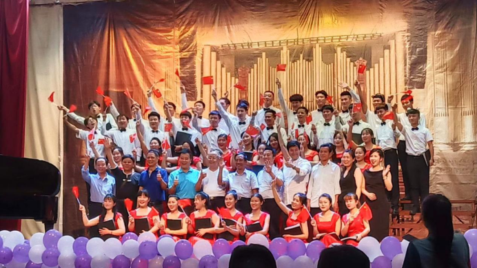 音乐会最后全体合唱团员手挥五星红旗走下站台与观众共同唱响《我和我的祖国》,音乐声、掌声、欢呼声汇成一片,音乐会由此推向高潮,本次音乐会是“春之声”合唱团一年来的成果体现,同时也展示了公司音乐公司音乐专业的风采。在场领导及嘉宾对此次音乐会表示了充分肯定并给予了高度的评价。