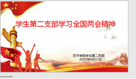 会议伊始,全体党员共同观看了国务院总理李克强代表国务院向十三届全国人大三次会议所做的政府工作报告视频。随后对其中内容作了重点学习,对2019年和今年以来的工作回顾、今年的发展主要目标和下一阶段的工作部署进行了深入解读。随后,支部党员就两会期间的热点问题进行学习和讨论,党员们对于其中的民生和教育等问题表达了自己的意见和看法,并针对疫情发生以来中华儿女同舟共济、相守相望的各项事迹表达了自己的信心和决心。