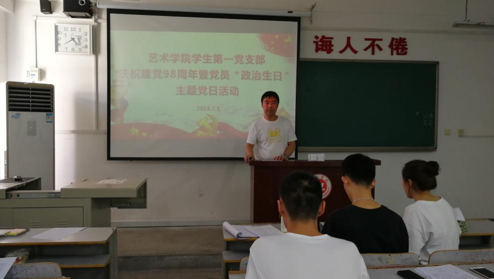 为了引导党员时刻牢记自己的党员身份,发挥先锋模范带头作用,2019年7月1日下午,在中国共产党成立98周年之际,bevictor伟德员工第一党支部在1-606教室举办了庆祝建党98周年暨党员“政治生日”主题党日活动,活动由支部书记刘钰主持。