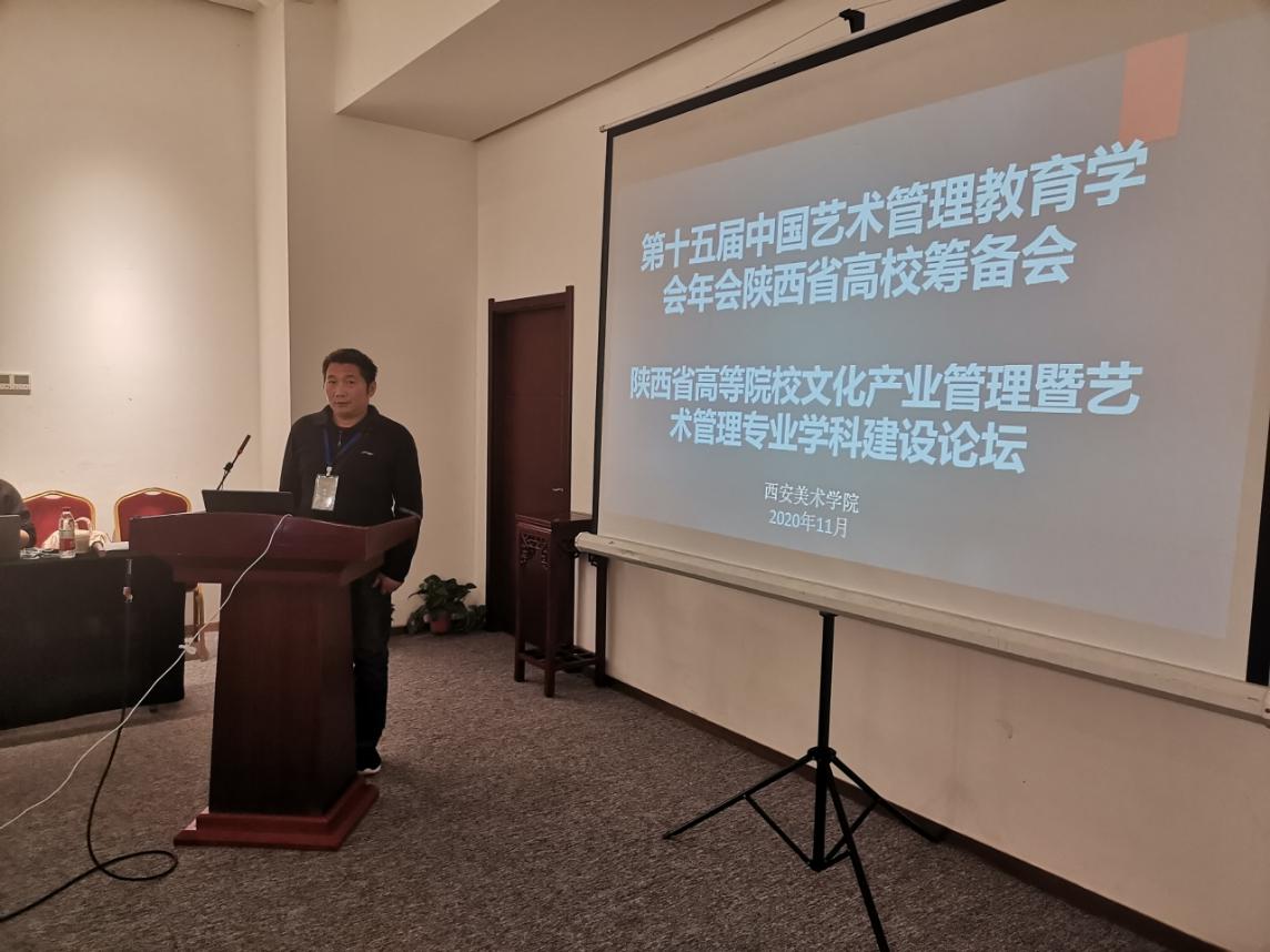 2020年11月14日,第十五届中国艺术管理教育学会年会陕西高校筹备会——陕西省高等院校文化产业管理暨艺术管理专业团队建设论坛在西安美术公司举行,本次会议由西安美术公司美术史论系和团队建设办公室共同主办。出席本次论坛的领导和嘉宾有西安美术公司党委副书记李四军教授、陕西师范大学文公司党委书记孙清潮教授、陕西师范大学商公司经理雷宏振教授,西安交通大学人文公司黎荔教授,陕西科技大学田龙过教授,西安音乐公司音乐学系主任叶明春教授、宝鸡文理公司美术公司经理王宝强教授、咸阳师范公司美术公司经理崔伟刚教授、西安广播电视台李朵老师等众多陕西高校的专家学者,参会人员还包括美术史论系党政领导班子、团队建设办公室负责人、艺术管理教研室师生、艺术管理实务实践者与艺术管理机构负责人等。