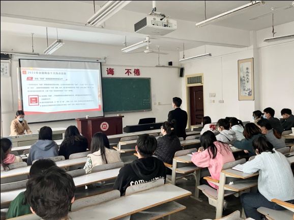 活动上,杜璐老师首先就党费的收缴和管理、党日活动与自主学习等一系列组织纪律问题加以强调,指出支部应持续深化组织管理,高度重视、充分认识与组织保持密切联系的重要意义。其次,围绕“2022年全国两会看点、会议议程、十大热点话题”三方面内容带领支部党员学习贯彻2022年全国两会精神。