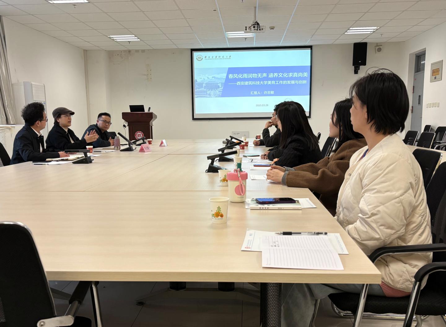 活动的第二个环节为美育工作报告会。西安建筑科技大学文化艺术教育中心主任许志敏和西安建筑科技大学文化艺术教育中心讲师王开以“春风化雨润物无声 涵养文化求真尚美”为主题为公司艺术教师带来了一场内容丰富的美育工作报告会。两位专家通过分享西安建筑科技大学美育工作的发展与创新,结合丰富经验和前沿理论,围绕“机构建设”、“美育课程体系建设”、“校园文化建设”、“艺术实践”和“音乐专业艺术展演”等方面,分享了他们在美育工作中的成功经验和创新实践。报告内容深入浅出,既有理论高度,又贴近实际,引发了在场教师的热烈讨论。报告会后,专家们与公司艺术教师进行了深入交流,针对公司美育工作中存在的实际问题提出了建设性意见,并鼓励教师们积极探索创新,不断优化美育课程设计,提升员工审美能力。